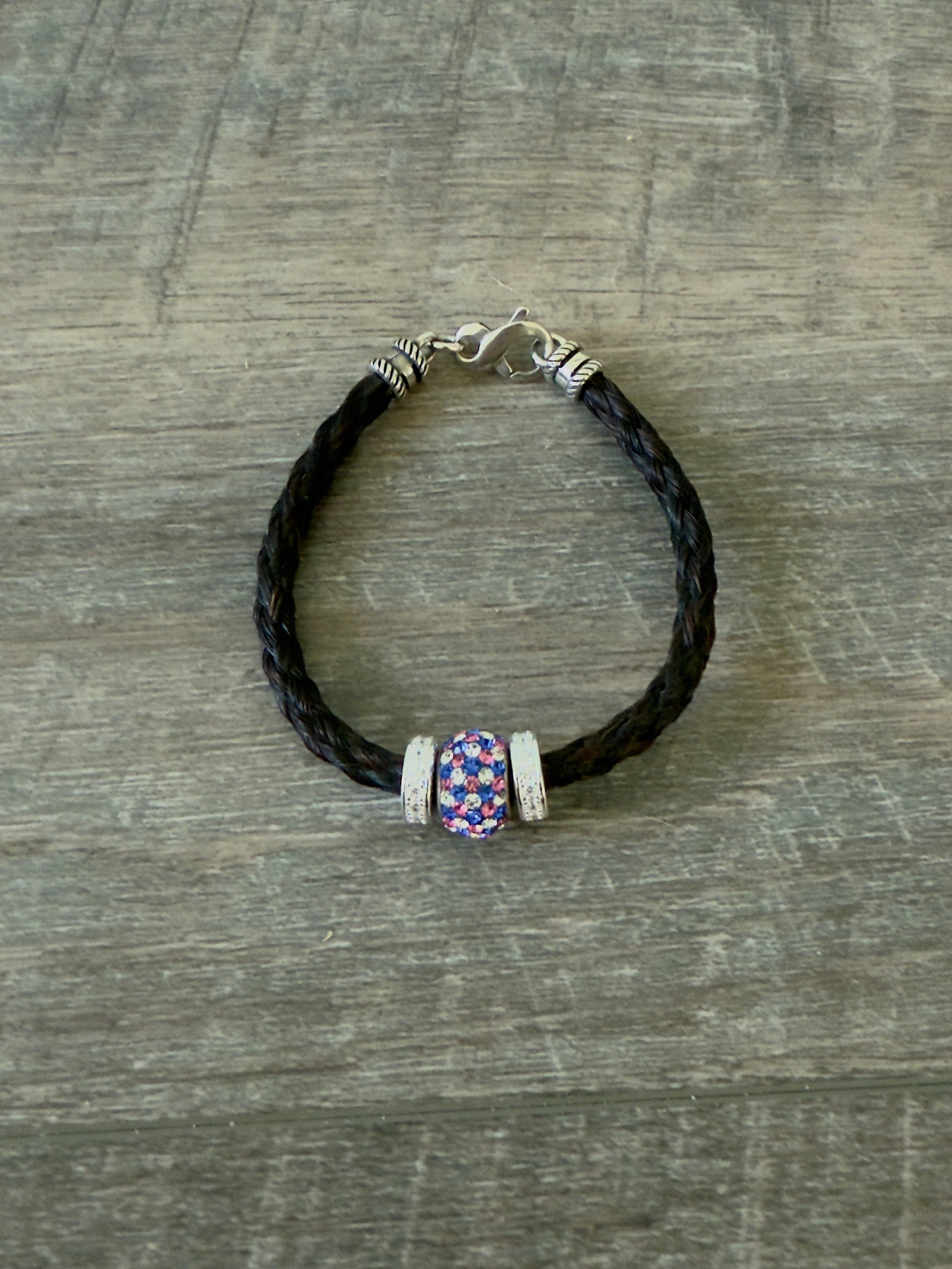 4mm braided bracelet with a sterling silver lobster clasp, bling bead and CZ beads.